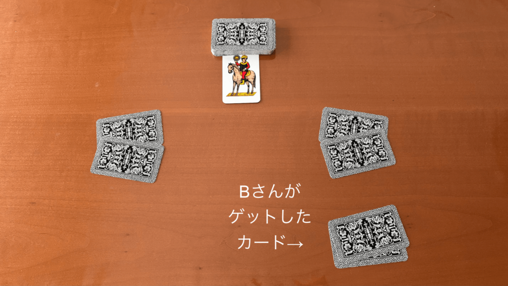 さっきBさんがカードをゲットしたなら、Bさんが先に山札から1枚取って手札にし、