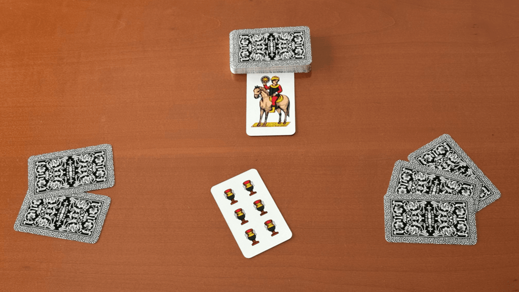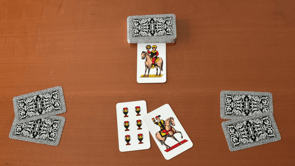 よって、先手で杯の6を出したAさんが、カードをゲットします。