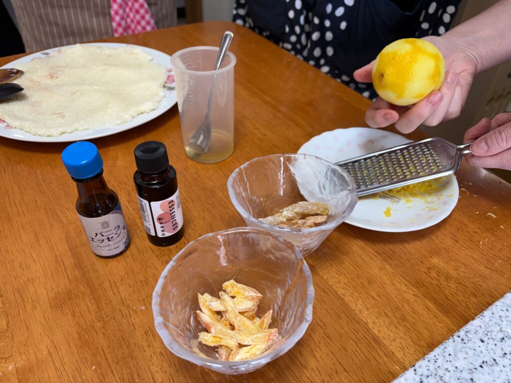 今回の料理教室では、ゆずのピールも使いました。