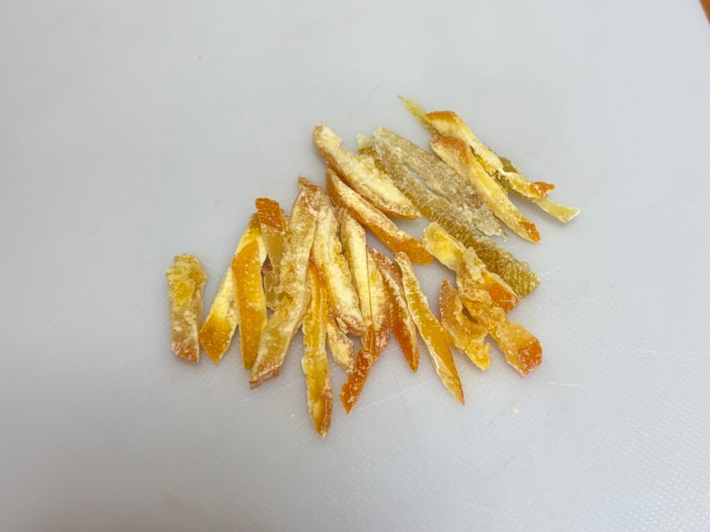 すでに刻んであるオレンジピールもAmazonで売られてるので便利です。