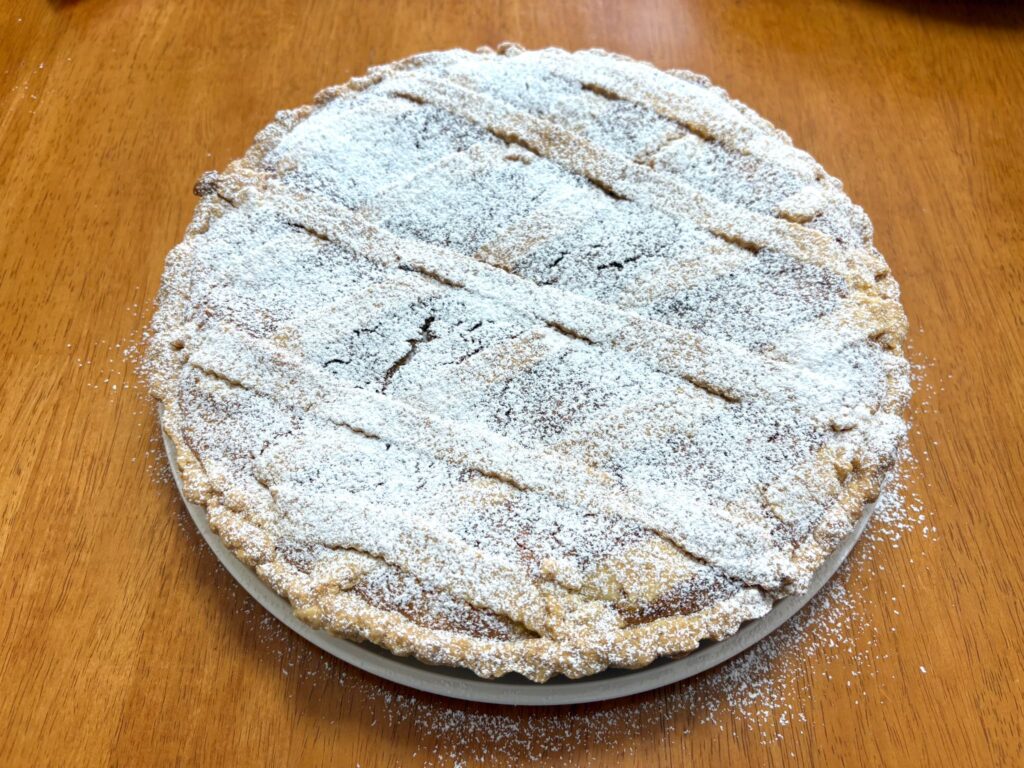 伝統的には、タルトのフィリング(中身)に粒状の麦を混ぜて作りますが、
